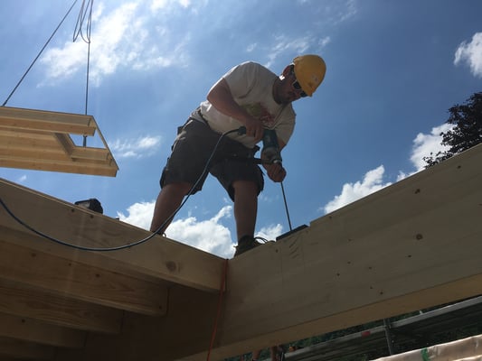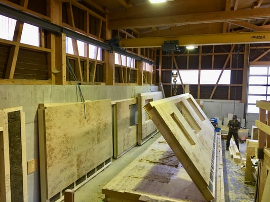 Die Elemente werden in unserer Werkhalle vorfabriziert.